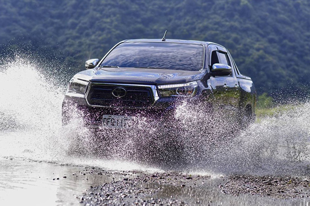 貨斗可以將我的展覽用的型錄、產品塞好塞滿一台搞定。在這越來越炎熱的天氣,後座出風口可以讓後座的家人乘坐更舒服(有的品牌沒有),而且這時代的天氣變換劇烈,可能有短時間強降雨,HILUX 涉水70公分能力可以輕鬆應付。另外它的安全氣囊配備7個,超越他牌同款車,對駕駛與其家人朋友更安全,還有PVM環景功能,讓初次駕駛皮卡的人在停車或小巷時,更能注意車周邊環境,簡而言之,有了HILUX就可以往山上河谷海邊盡情駕馭!