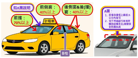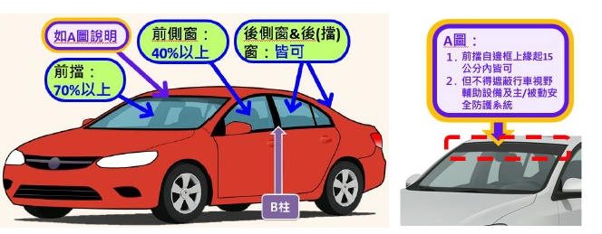 交通部建議車輛隔熱紙透光率符合以下要求: