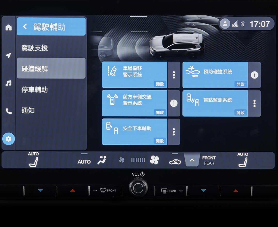 車身結構運用熱沖壓工藝,最高採用1,470MPa等級超高強度鋼材,搭配能有效吸收並分散前方撞擊能量的潰縮式前懸設計,可降低車室變形程度,保護乘客安全。